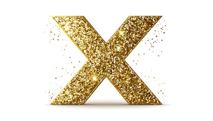 Gold glitter capital letter X on white background