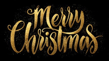 Sparkling Gold Glitter "Merry Christmas" Hand-Lettered Brush Script Typography. Luxurious Festive Greeting for Holiday Cards, Banners, and Seasonal Design Templates.