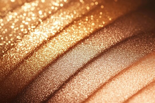 Shimmering golden glitter waves undulating over metallic bronze surface with bokeh glow