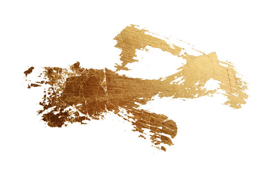 PNG Gold (bronze) glittering color smear brushstroke stain line blot on transparent background. Abstract Painting texture.