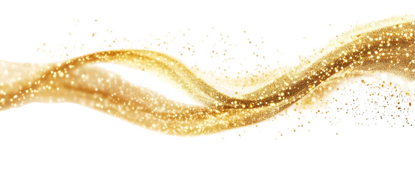 Dynamic golden splash with sparkling glitter effect, elegant flow and movement perfect for luxury design needs
