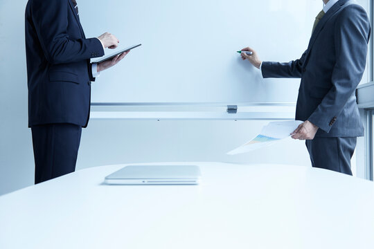 ホワイトボードに向かう二人の男性