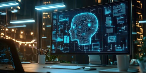 Digital assistant powered by AI floating above a smart workspace