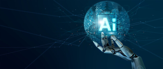 AI Artificial Intelligence problem solving computer CPU Processor. 3D illustration background.