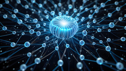 Abstract glowing network nodes forming a brain shape,  nodes,  background