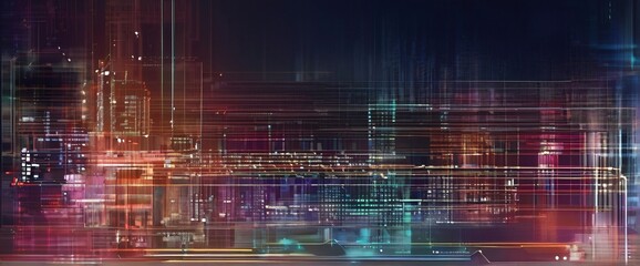 Abstract cityscape with colorful lights and data streams, representing modern technology, big data, and the digital world