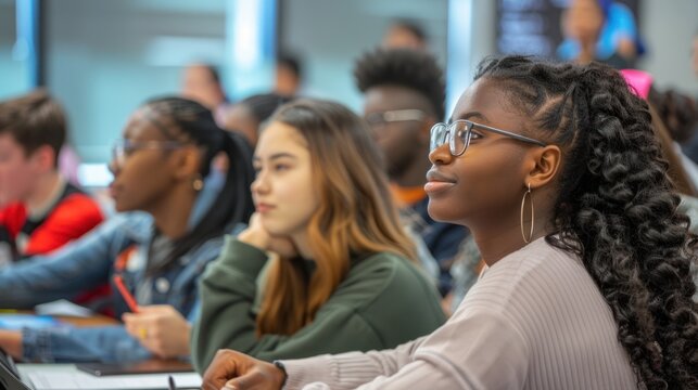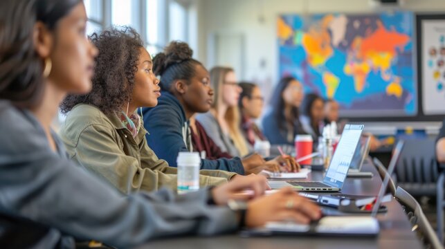 Teenagers participate in a UN Model conference, engaging in a lively discussion about global issues.