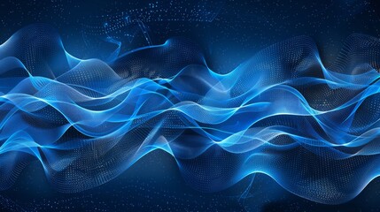 Abstract blue tech background with digital waves, dynamic network system, artificial neural connections, cyber quantum computing and electronic global intelligence hyper realistic