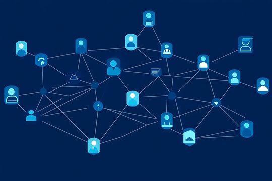 Network of Ideas: A stylized representation of a network, with a glowing profile symbol at the center, surrounded by interconnected user icons, indicating communication and interconnectedness.