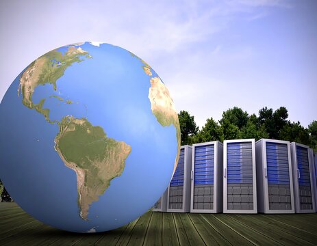 Data processing in server room with global connections