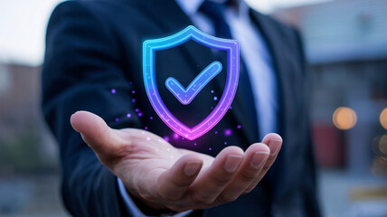 A businessman holding a digital sign touches a screen icon to tick a checklist box, symbolizing success and a strategic business decision through modern internet technology