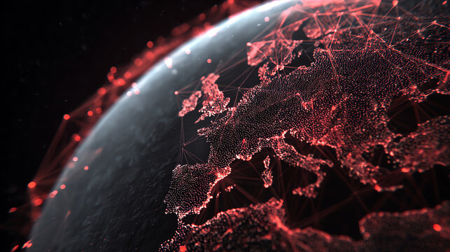 Abstract digital representation of Earth highlighting global connectivity through a network of lines and glowing points.