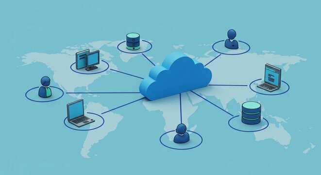Global cloud network connecting users and data centers worldwide, symbolizing seamless digital connectivity and modern technology solutions for businesses.