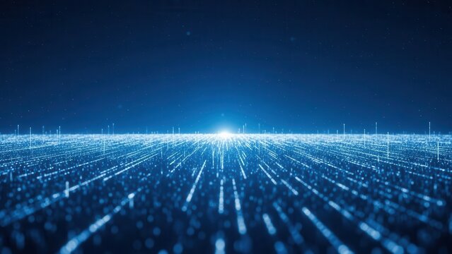Abstract Digital Data Flow on Blue Background Representing Technology and Connectivity.