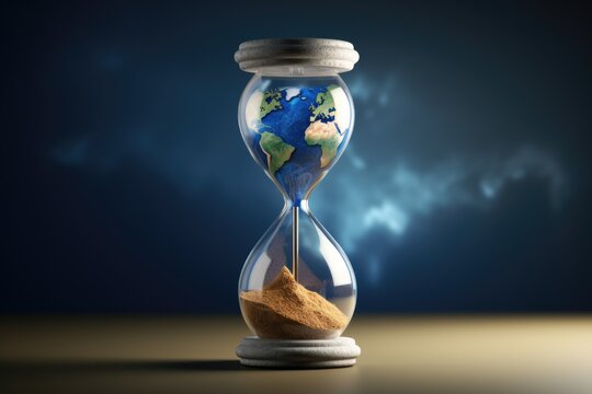 Sand clock ecology. Hourglass countdown for global environment saving. Generate ai