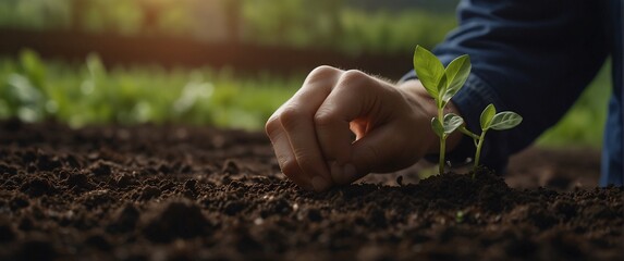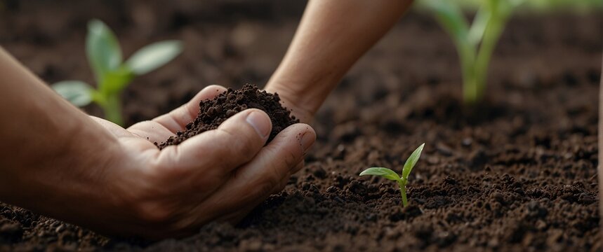 Expert hand of farmer checking soil health before growth a seed of vegetable or plant seedling, Business or ecology concept, analyze complex data sets in real-time, with a digital interface overlaid o
