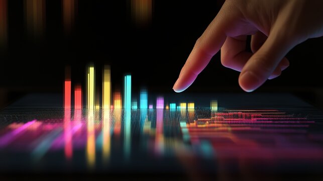 Abstract Colorful Data Visualization Digital Technology Futuristic Interface Graphic Design Modern Technology Interactive Screen Neon Lights Bright Colors Vivid Hues Touchscreen Interaction Digital