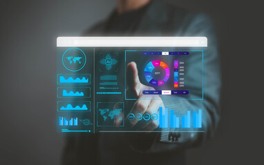 Abstract 3D financial dashboard with interactive data, representing business intelligence.