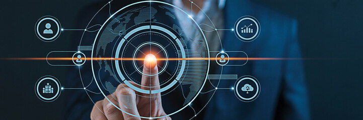 Global business analytics with digital interface and graphs