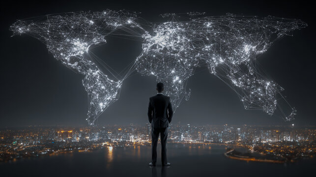 Artificial Intelligence Technology and Global Business Strategy Concept with Digital Interface.