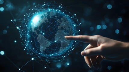 Abstract global data network connectivity on dark background