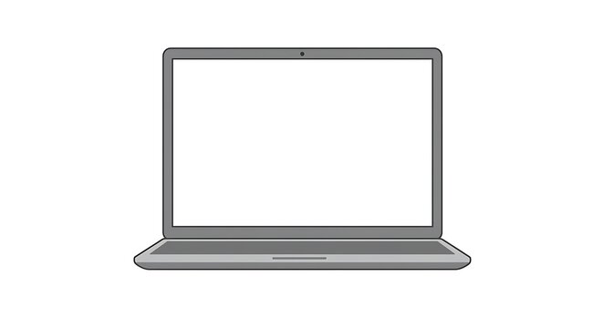 Modern minimalist laptop illustration featuring a pristine blank screen, representing the concept of a digital canvas for new ideas, content, and technological innovation