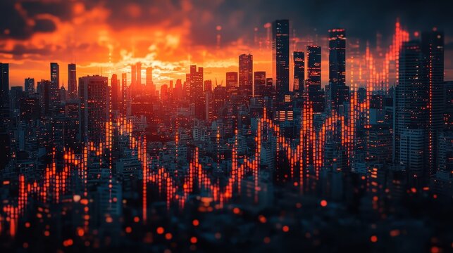 A dynamic canvas of vibrant financial data, where intricate candlestick patterns danced amidst a digital backdrop, reflecting the ebb and flow of the stock market, the heartbeat of the global