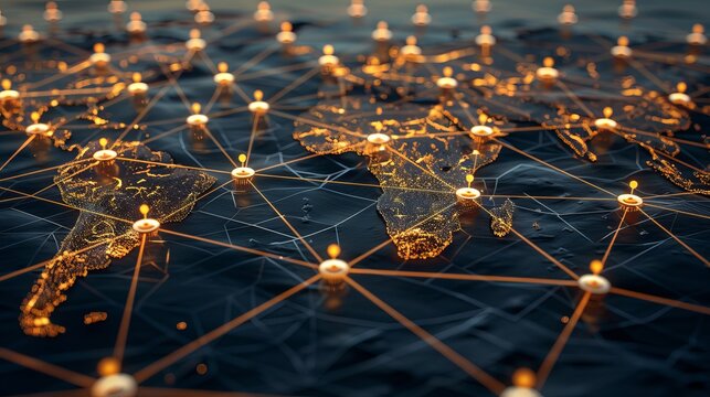 Illuminating a global network of interconnected individuals with glowing icons on dark canvas