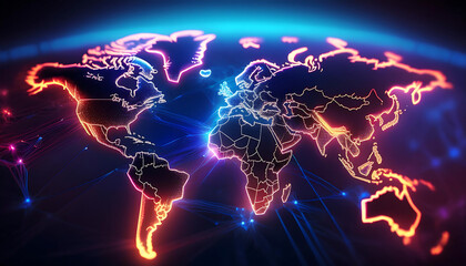 Futuristic radar hud interface scanning grid with code overlay, world map, circuit nodes, analytics