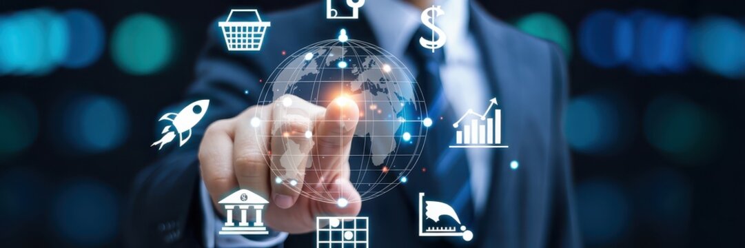 Hand interacts with glowing digital interface, futuristic technology concept.
