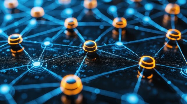 Connected nodes with glowing, blue network lines
