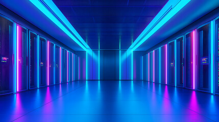 Modern server room with neon lighting
