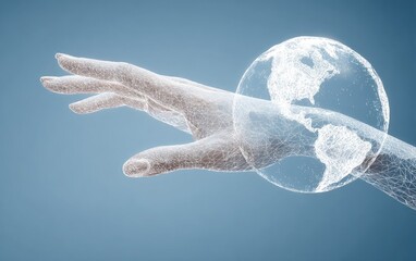 Transparent Globe with Geometric Network Design Illuminating Against a Gradual Blue Background Representing Global Connectivity and Digital Technology