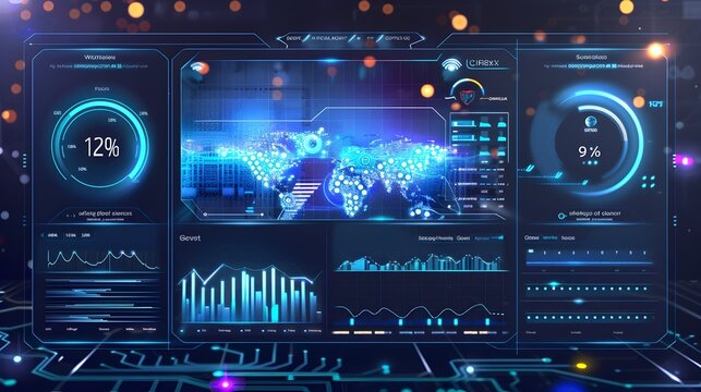 Real-time global data analytics dashboard visualizing insights from interconnected systems for decision-making, business analytics, and digital transformation Latch