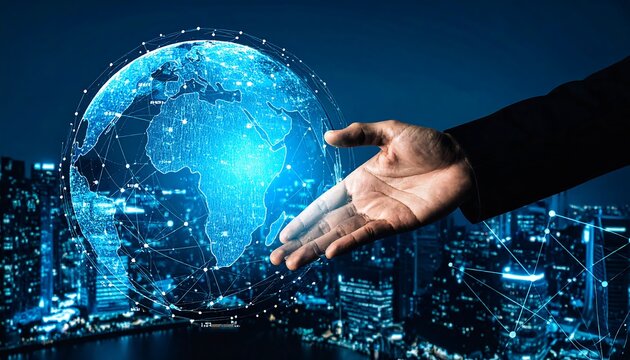 Global data network around earth with digital interface