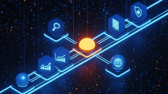 Abstract digital graphic of financial data streams, showcasing  dynamic charts and network connections.  Visual representation of complex data flows and metrics