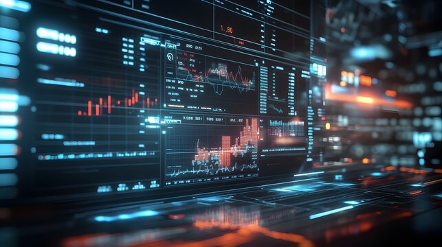 Businessman interacts with virtual stock market chart depicting financial analysis and investment trends with digital interface