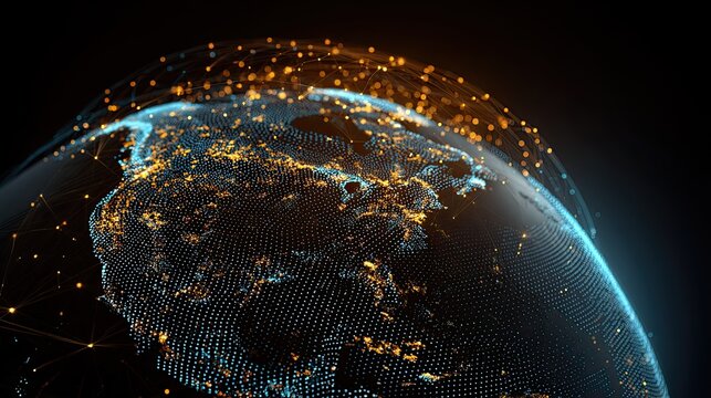 Abstract concept of global network connections and technological advancement viewed from space