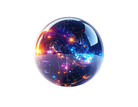 Sphere of glowing data inside a transparent orb