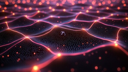 Abstract digital landscape with glowing lines. Big data visualization and information flow for modern technology concepts