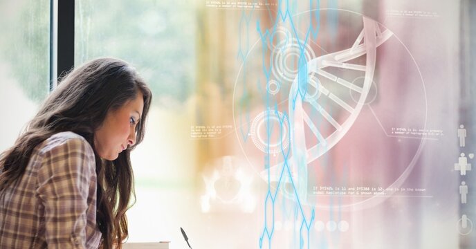 Digital dna interface with futuristic data processing interface