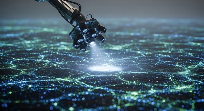 Robotic Arm Scanning Digital Data Network with Light Beam for AI and Future Technology Analysis