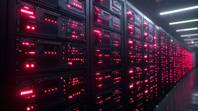 High performance server racks operating in secure data center environment essential for digital infrastructure.