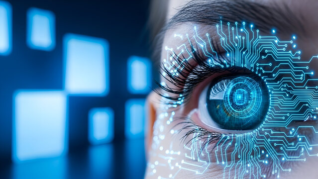 Human Eye with Digital Circuitry Overlay Representing Artificial Intelligence and Future Technology