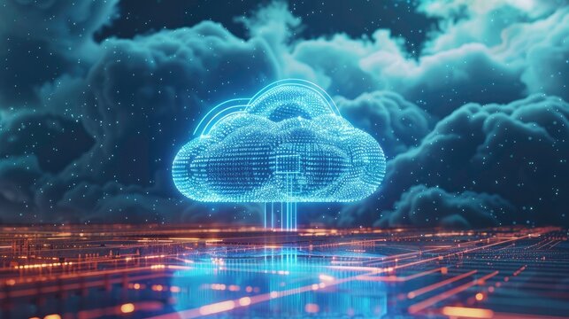 Data center server room, glowing lights, network, digital, technology, background, website, illustration