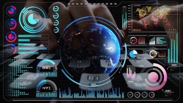 Futuristic digital analytics on globe