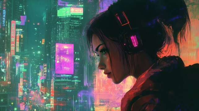 Futuristic dashboard with neon code overlay in digital analytics