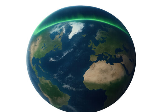Earth globe showing glowing aurora borealis at night over northern hemisphere, transparent background