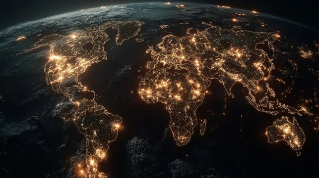 A realistic digital world map highlighting ai driven global logistics with illuminated data points