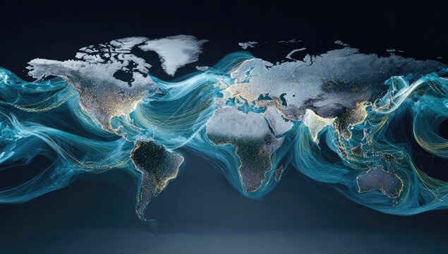 Global Data Wave With Digital World Map Visualization Images